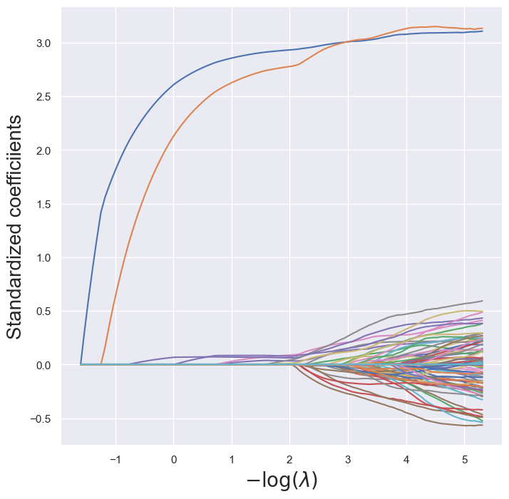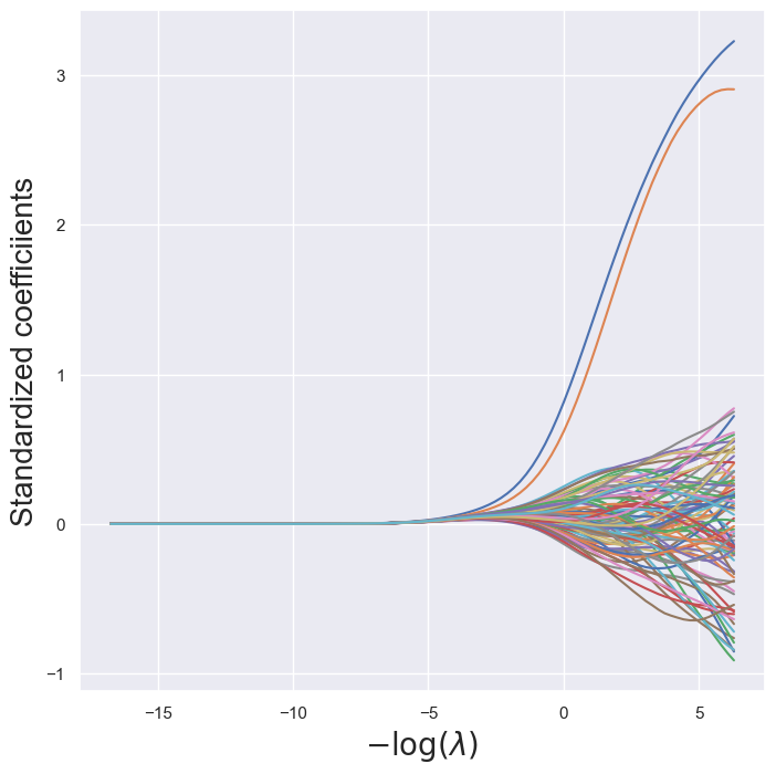 soln_path = pd.DataFrame(soln_array.T,columns=x_columns, index=-np.log(lambdas))path_fig, ax = subplots(figsize=(8,8))