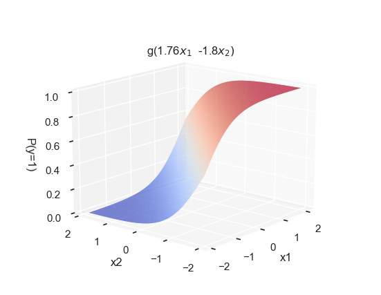 Z = 1 / (1 + np.exp(-(log_fit.intercept_[0] + log_fit.coef_[0,0]*X1 + log_fit.coef_[0,1]*X2)))