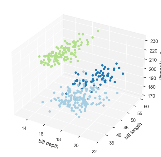 x = penguins[['bill_depth_mm', 'bill_length_mm', 'flipper_length_mm']]