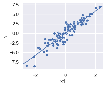 lm_plot = sns.relplot(df, x='x1', y='y', height = 3, aspect = 1.2)