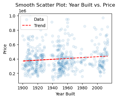 plt.title('Smooth Scatter Plot: Year Built vs. Price')